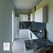 Stan se sastoji od ulaznog prostora, dnevnog boravka s blagovaonicom i kuhinjom otvorenog koncepta s izlazom na terasu, dvije spavaće sobe, dvije kupaonice i vešeraja.